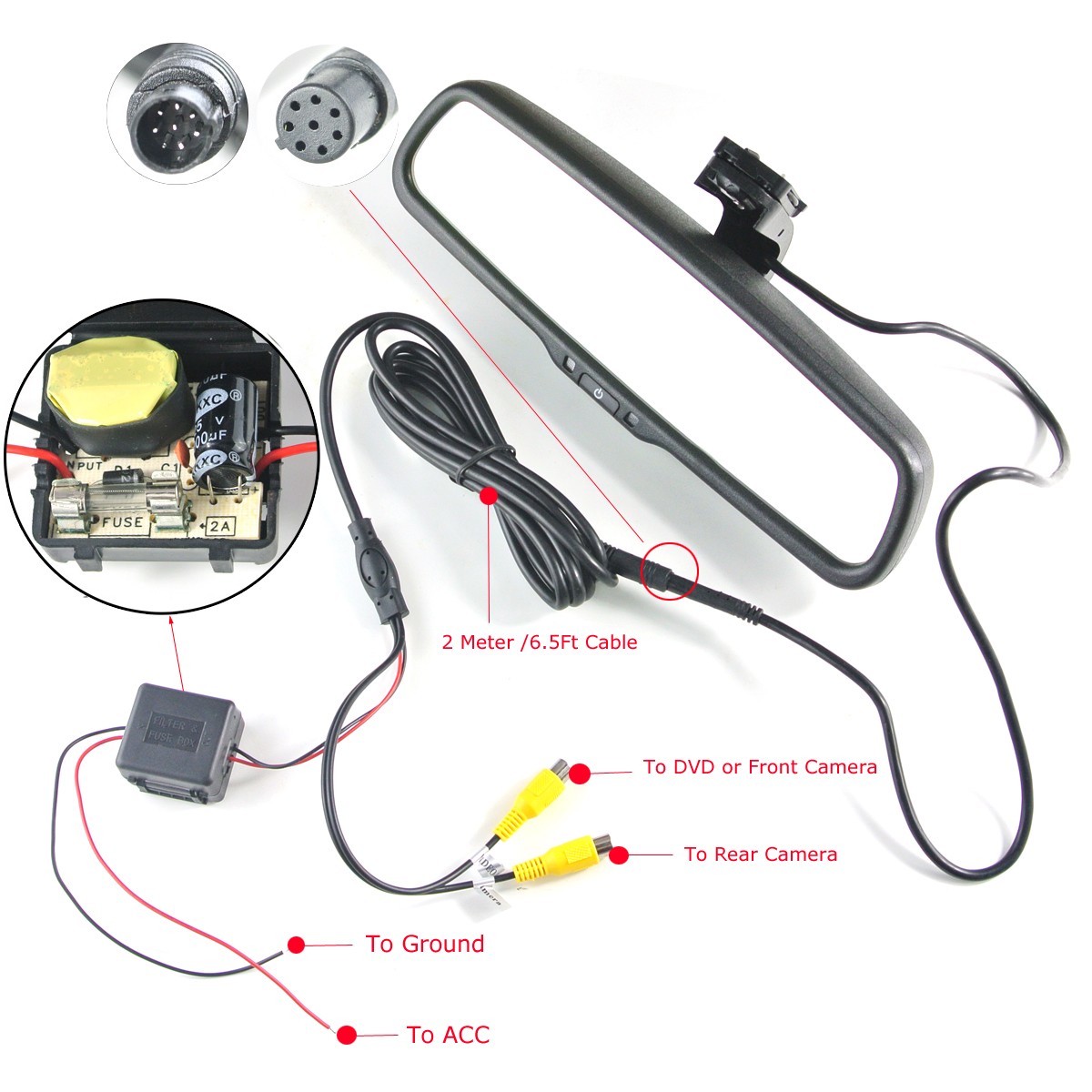 Video:AV1-for VCD/DVD/DVR,AV2-for backup camera