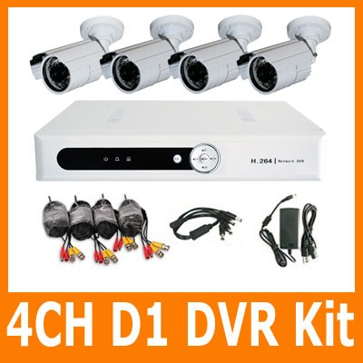 4CH Full D1 H.264 Home Video Security CCTV Surveillance DVR Record System Kit 4 x CMOS IR Day&Night Weatherproof Camera